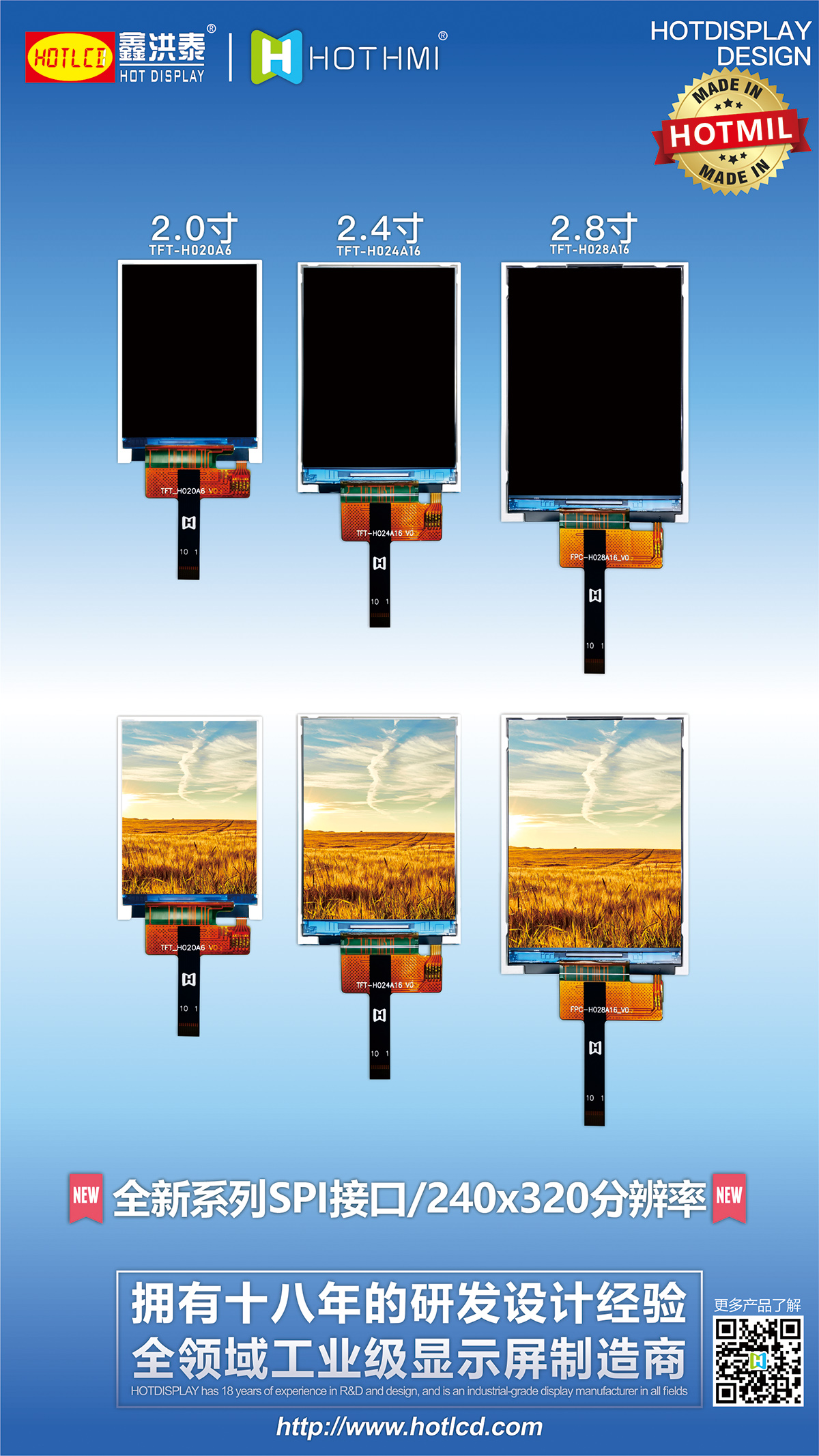 HOTLCD創立于2004年,位于全球電子產業鏈配套最快最全的粵港澳大灣區,是一家專業從事新一代信息產業之LCD液晶顯示模組、TFT顯示屏產品的研發、生產、銷售和服務的深圳市高新技術企業。